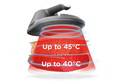 You’ll feel deep, rhythmic muscle contractions along with a warming sensation similar to an intense workout paired with a relaxing hot stone massage.